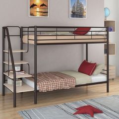 Материал каркаса: стальная труба. Все металлические элементы кровати покрыты износоустойчивой полимерной порошковой краской без запаха. Ступени лестницы из ЛДСП. Двухъярусную кровать можно собирать и разбирать неограниченное количество раз, и от этого она не потеряет в прочности и качестве. Гарантия производителя: 18 мес.