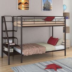 Материал каркаса: стальная труба. Все металлические элементы кровати покрыты износоустойчивой полимерной порошковой краской без запаха. Ступени лестницы из ЛДСП. Двухъярусную кровать можно собирать и разбирать неограниченное количество раз, и от этого она не потеряет в прочности и качестве. Гарантия производителя: 18 мес.