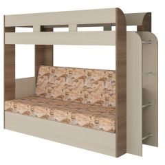 Кровать 2-х ярусная с диваном Карамель 75 (Саванна) Ясень шимо светлый/темный | мини фото 1