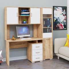 Компьютерный стол КЛ-1.2 с пеналом (фасад ЛДСП) Дуб баррик/белый жемчуг