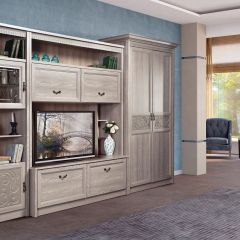 Классическая серия «Лючия» включает 12 модулей для гостиной и кабинета. Мебель представлена в 3-х декорах, реалистично имитирующих древесину натурального дуба: в темно коричневом «дубе оксфорд» и модном серо-бежевом «дубе оксфорд серый».