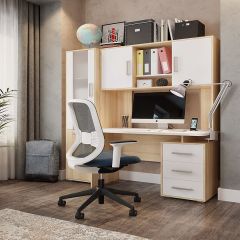 В гарнитуре присутствуют столы с разной формой столешницы: