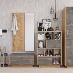 Модульная Прихожая Эго (дуб крафт золотой/камень темный) цоколь